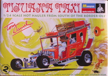 Reissued Revell-Monogram kit from 2009: The Tijuana Taxi . Originally released in 1969, this kit has box art from the original issue! This one has not been reissued in 34 years so WOW--consider getting two of them: One for building stock and one for customizing! |