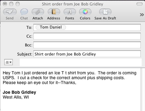 If you'd like, send Tom an E-mail message telling him you just sent him an order for some TD Store items (this step is totally optional) Tom's E-mail address is: td@tomdaniel.com |